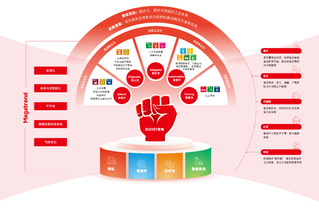 作为中国工业车辆行业的领军企业,安徽合力秉持“合力提升未来”的使命,系统构建具有行业特色的ESG战略管理与实践体系,扎实推进可持续发展“BOOST”战略,全面深化ESG管理,持续提升ESG表现,共绘可持续发展的工业蓝图,努力为实现经济繁荣、环境可持续和社会公平积极贡献合力力量。