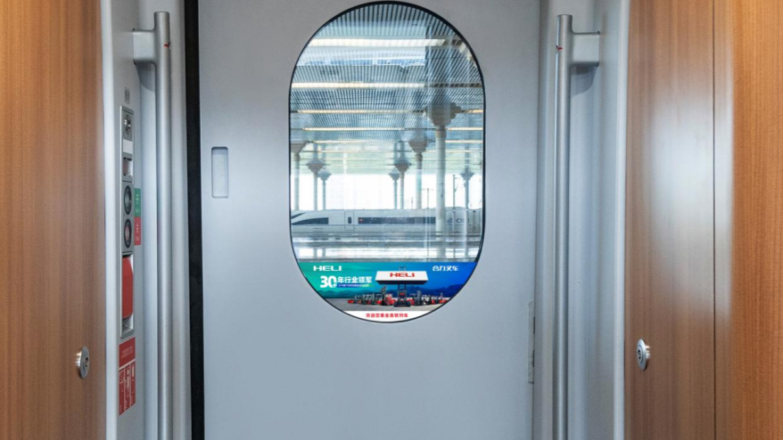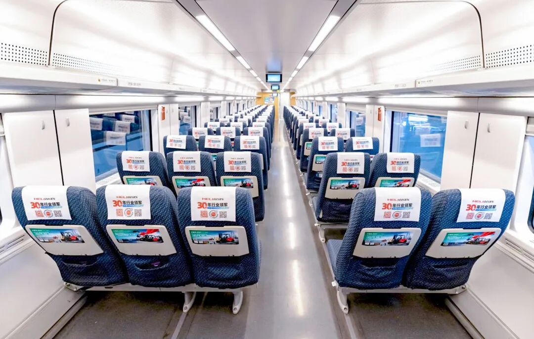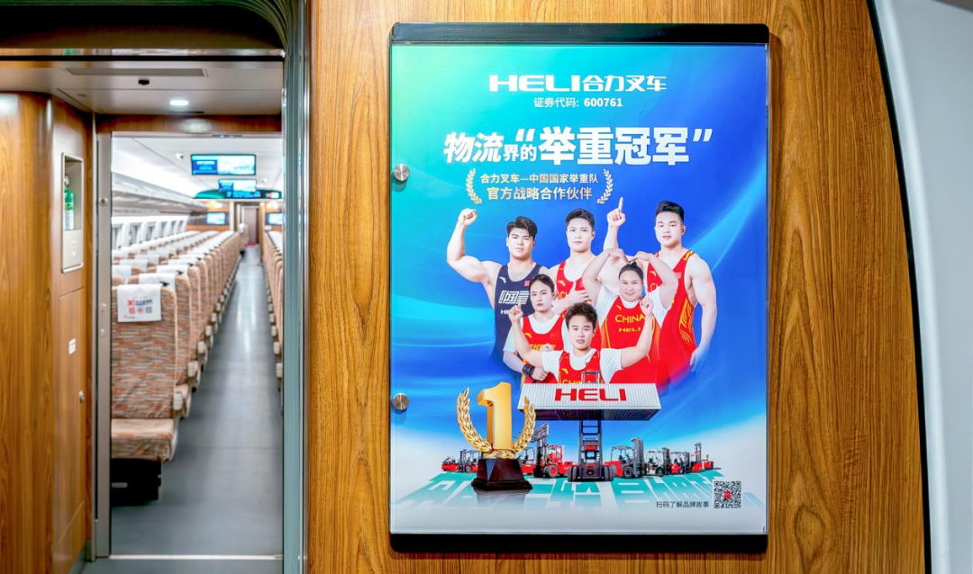 京广线纵贯南北,陇海线横跨东西,京沪线客流如织,沪汉蓉线串联古今,京杭福线融汇人文与自然……列车穿梭不息,在运送旅客的同时也将合力叉车六十多年的专注与三十四载的连冠传奇生动地呈现在亿万公众面前。车厢内,头片、桌贴、品牌天幕等视听元素交织出沉浸式的品牌空间,让“合力”成为可信赖的中国制造代名词。