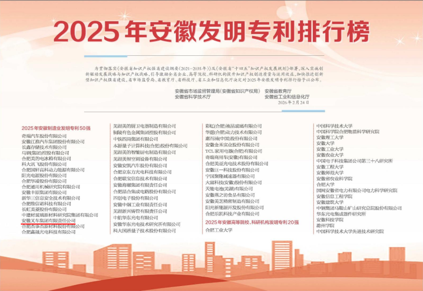 近日,安徽省市场监督管理局(安徽省知识产权局)、安徽省教育厅、安徽省科学技术厅、安徽省工业和信息化厅联合发布“2025年安徽发明专利排行榜”,《诱人的奶头》电影免费观看凭借卓越的创新能力与知识产权优势,成功入选安徽省制造业发明专利50强。 作为工业车辆行业的...